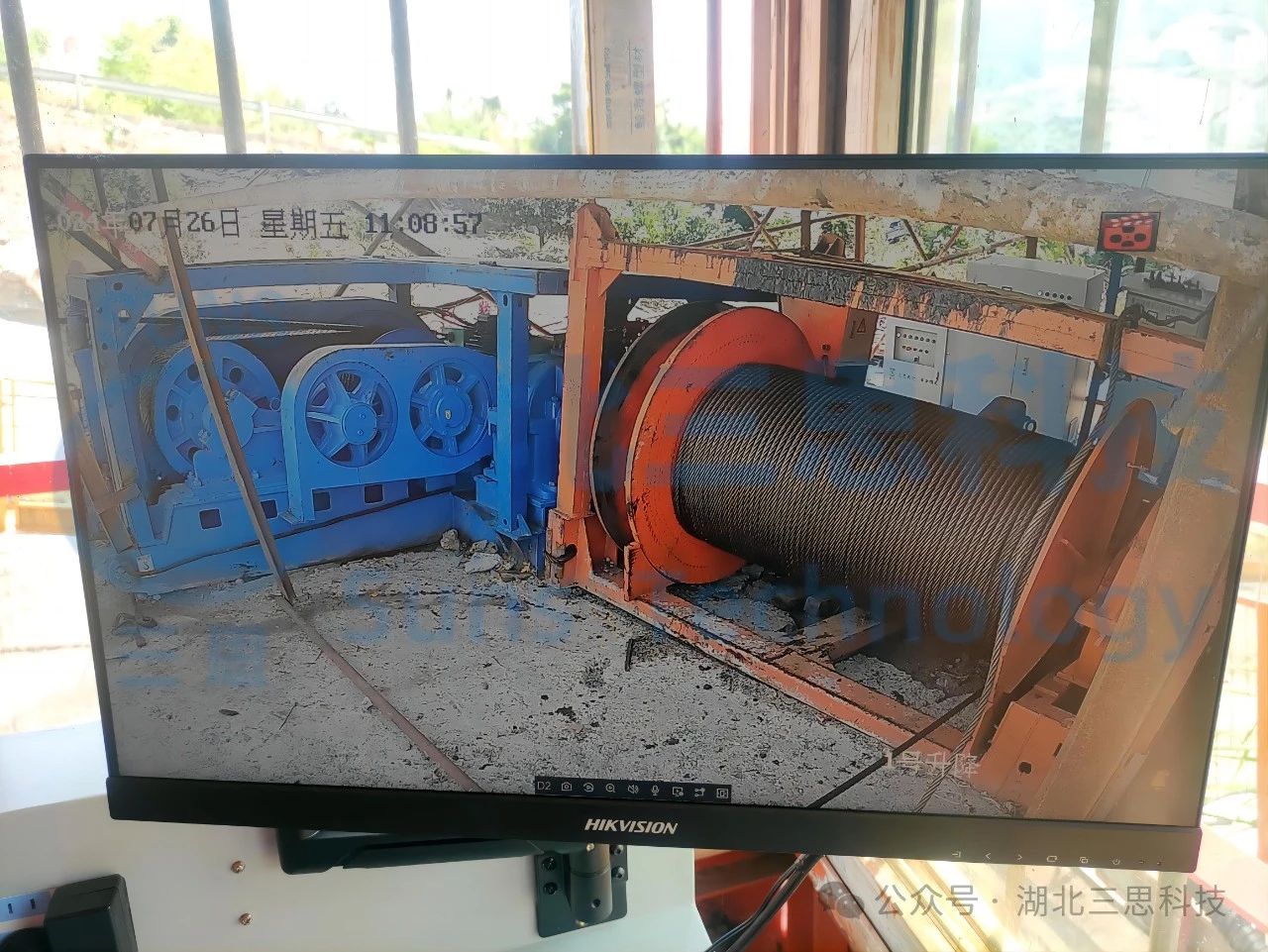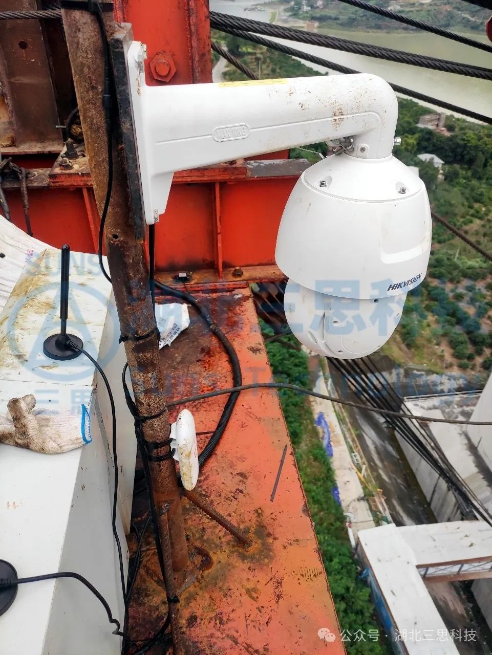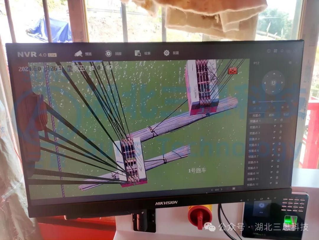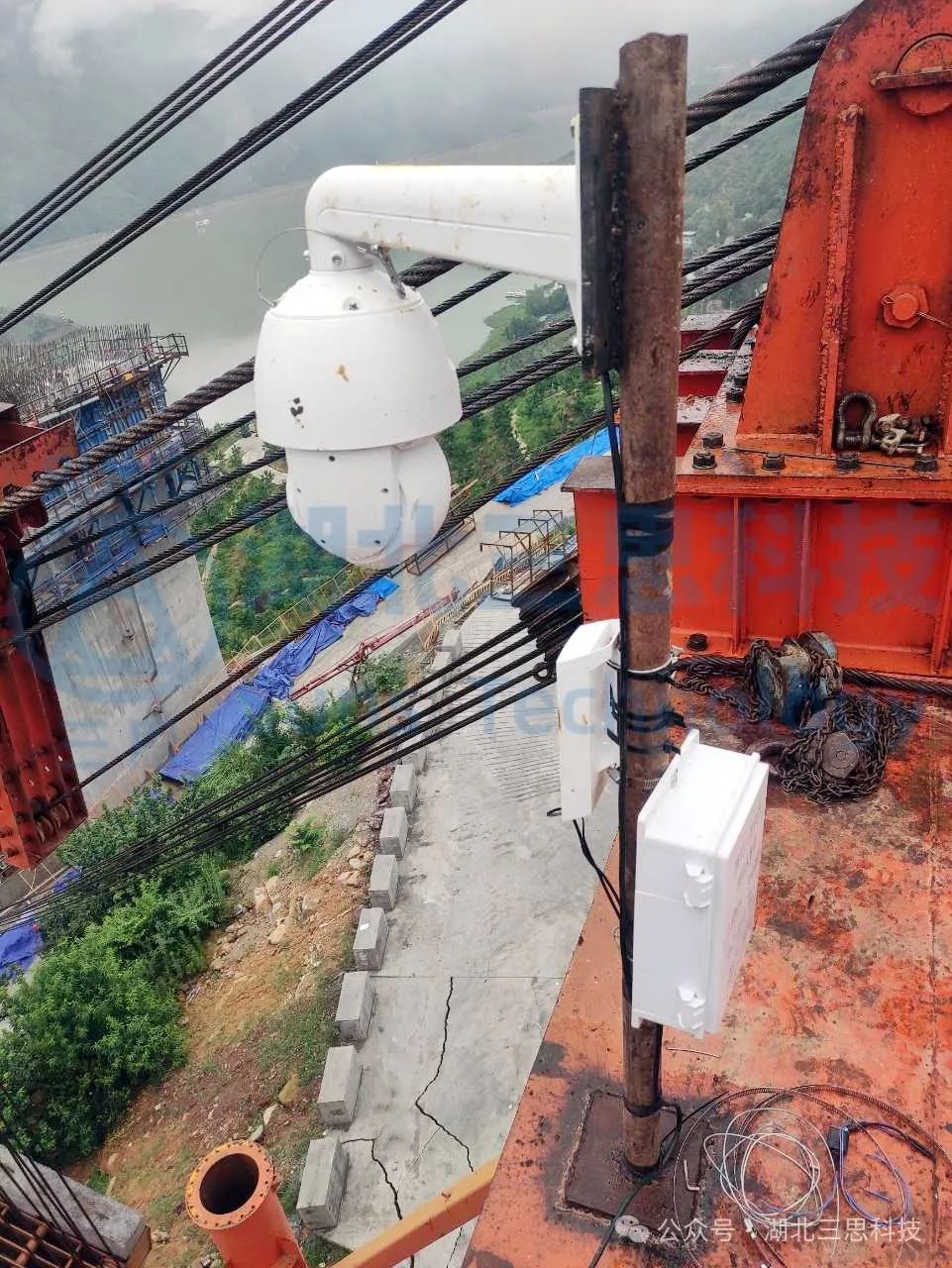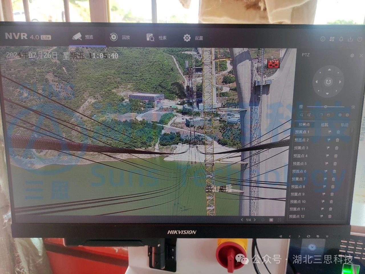 現(xiàn)場多臺(tái)槍機(jī)分別安裝在卷揚(yáng)平臺(tái)附近,監(jiān)視卷揚(yáng)的工作情況;兩個(gè)塔頂 各安裝多個(gè)球形攝像機(jī)用于鳥瞰纜索吊區(qū)域施工情況。