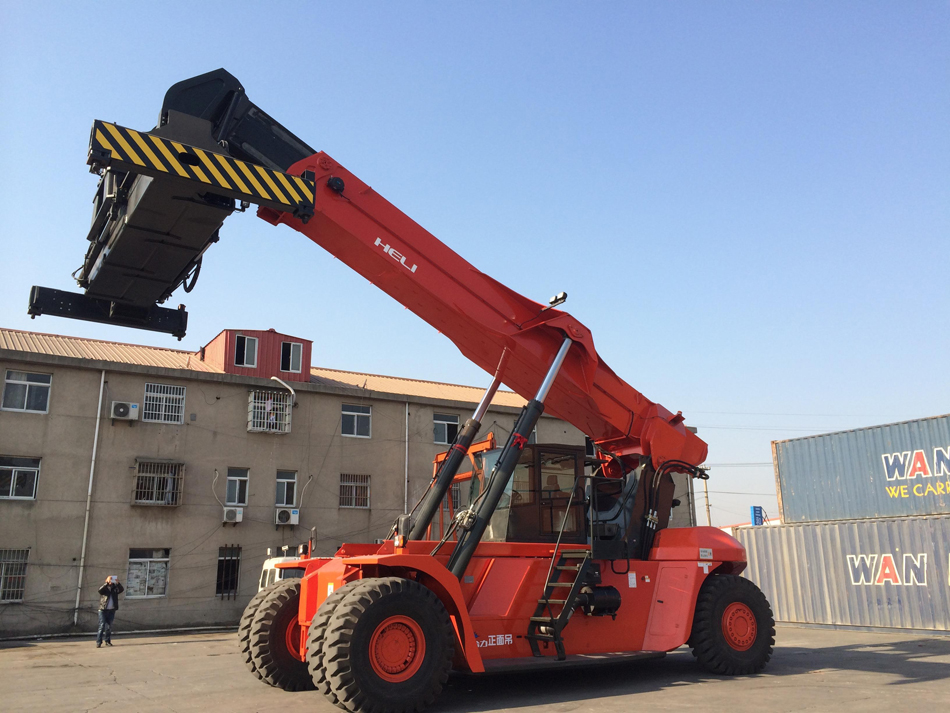 正面吊專門為20英尺和40英尺國際集裝箱而設(shè)計的,主要用于集裝箱的堆疊和碼頭、堆廠內(nèi)的水平運輸,與叉車相比,它具有機動靈活,操作方便,穩(wěn)定性好,輪壓較底,堆碼層數(shù)高,堆場利用率高等優(yōu)點。可進行跨箱作業(yè)。特別適用于中小港口,鐵路中專站和公路中專站的集裝箱裝卸,也可在大型集裝箱碼頭作為輔助設(shè)備來使用。