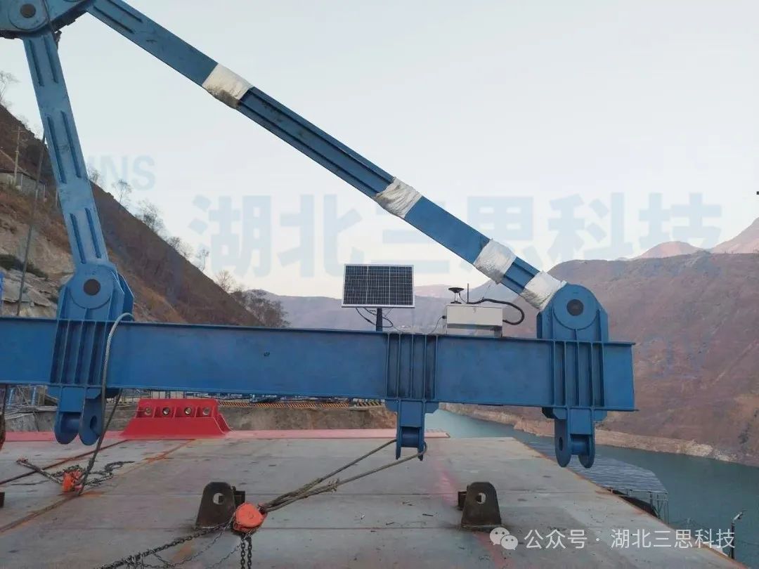 在吊具上安裝GNSS定位基站,定位基站通過發(fā)電裝置供電,基站通過無線模塊將吊具位置傳送至集中監(jiān)控中心,由PLC對數(shù)據(jù)進(jìn)行處理,通過PLC計(jì)算解析后在液晶屏上顯示出吊具的起升高度數(shù)據(jù)。