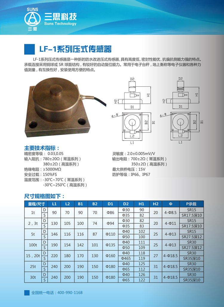 產(chǎn)品詳情 功能介紹 產(chǎn)品優(yōu)勢(shì) 參數(shù)/型號(hào) 包裝清單 產(chǎn)品詳情 LF-1系列壓式傳感器是一種新的防水改進(jìn)壓式傳感器,具有高度低、密封性能優(yōu)、抗偏抗側(cè)能力強(qiáng)的特點(diǎn)。承載連接采用銅球或SR球面結(jié)構(gòu),有較好的自動(dòng)復(fù)位能力。常用于電子臺(tái)秤、地上衡稱等電子儀器和各種力值測(cè)量,有互換性好、安裝使用方便的特點(diǎn)。 功能介紹 產(chǎn)品優(yōu)勢(shì) 參數(shù)/型號(hào) 包裝清單