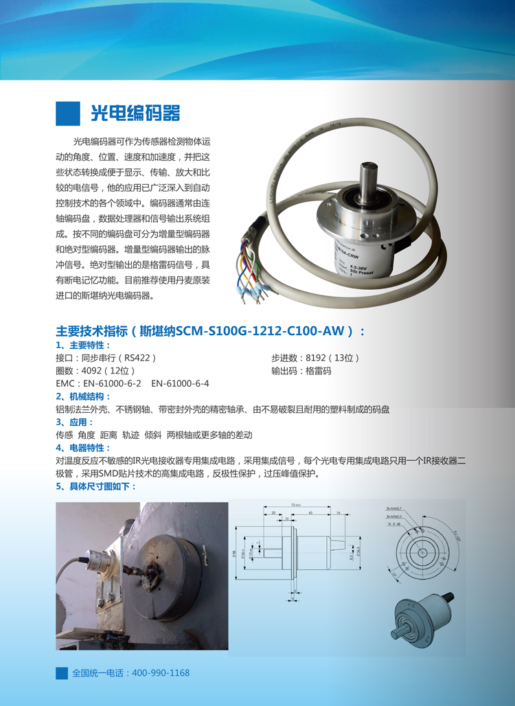 光電編碼器可作為傳感器檢測(cè)物體運(yùn)動(dòng)的角度、位置、速度和加速度,并把這些狀態(tài)轉(zhuǎn)換成便于顯示、傳輸、放大和比較的電信號(hào),他的應(yīng)用已廣泛深入到自動(dòng)控制技術(shù)的各個(gè)領(lǐng)域中。編碼器通常由連軸編碼盤、數(shù)據(jù)處理器和信號(hào)輸出系統(tǒng)組成。按不同的編碼盤可分為增量型編碼器和絕對(duì)型編碼器。增量型編碼器輸出的是脈沖信號(hào),絕對(duì)型輸出的是格雷碼信號(hào),具有斷電記憶功能。