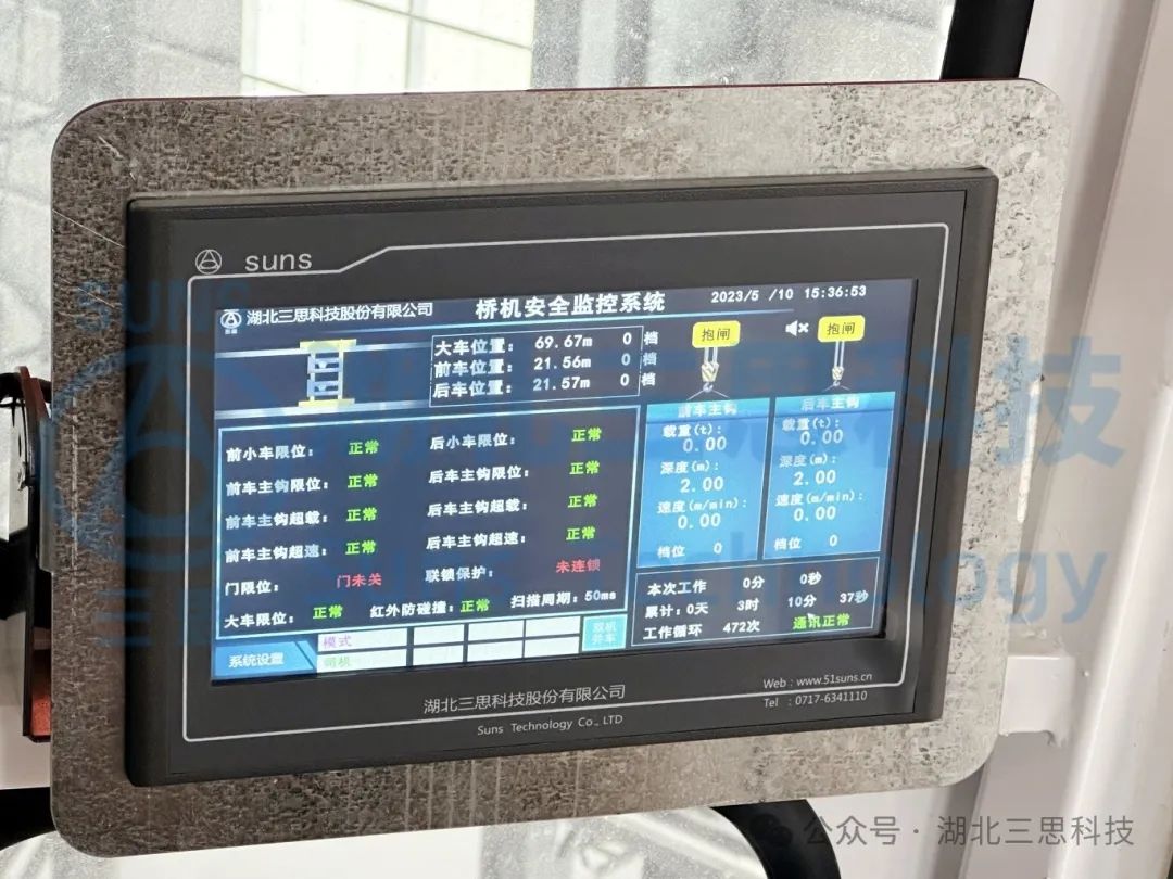 系統(tǒng)實時顯示起重機的運行狀況參數(shù),如:主副參數(shù)、整車參數(shù)、天車參數(shù)、本次工作時間、工作時間、工作次數(shù)、通訊狀況等,可以讓駕駛員全方位掌握橋機的實時運行狀況,提高了操作的安全性。
