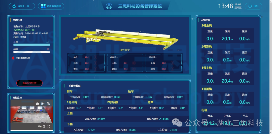 通過RTK定位技術,將上下層橋機位置精確定位,實現(xiàn)橋機在軌道位置的準確把控,再通過系統(tǒng)對其他機構空間位置的監(jiān)測,從而實現(xiàn)系統(tǒng)上下層橋機實時防碰撞功能。