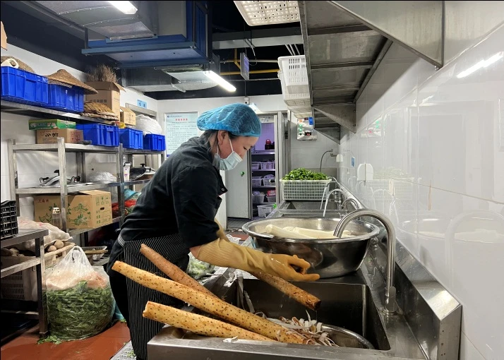 廚師長曹永說,“做廚師這些年,衣服都是干了濕、濕了干。雖然又熱又累,但看著員工吃得開心,值得?!?/p>