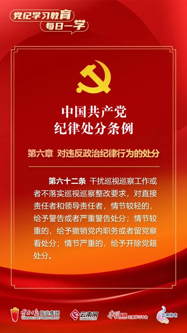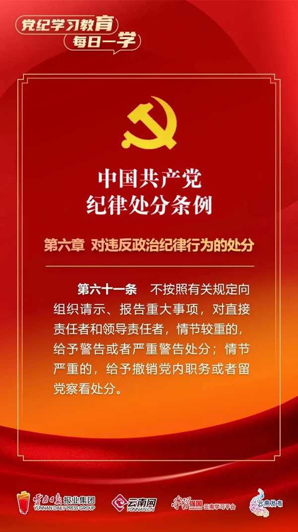 為深入學(xué)習(xí)貫徹落實(shí)習(xí)近平總書記關(guān)于黨紀(jì)學(xué)習(xí)教育的重要講話和重要指示精神,便于全省各級(jí)黨組織和廣大黨員、干部深入學(xué)習(xí)貫徹修訂后的《中國共產(chǎn)黨紀(jì)律處分條例》,云南網(wǎng)聯(lián)合“學(xué)習(xí)強(qiáng)國”云南學(xué)習(xí)平臺(tái)、云南發(fā)布共同策劃推出“黨紀(jì)學(xué)習(xí)教育•每日一學(xué)”專欄,營造全員參與、人人學(xué)紀(jì)的濃厚氛圍。今天,我們推出第?期,一起來學(xué)習(xí)。