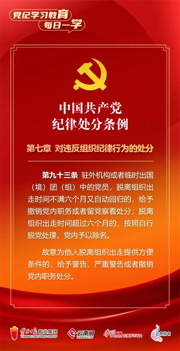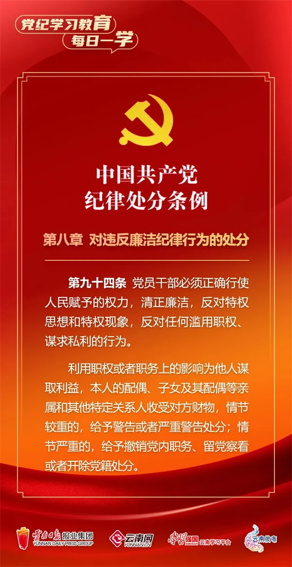 為深入學(xué)習(xí)貫徹落實(shí)習(xí)近平總書記關(guān)于黨紀(jì)學(xué)習(xí)教育的重要講話和重要指示精神,便于全省各級黨組織和廣大黨員、干部深入學(xué)習(xí)貫徹修訂后的《中國共產(chǎn)黨紀(jì)律處分條例》,云南網(wǎng)聯(lián)合“學(xué)習(xí)強(qiáng)國”云南學(xué)習(xí)平臺、云南發(fā)布共同策劃推出“黨紀(jì)學(xué)習(xí)教育•每日一學(xué)”專欄,營造全員參與、人人學(xué)紀(jì)的濃厚氛圍。今天,我們推出第?期,一起來學(xué)習(xí)。