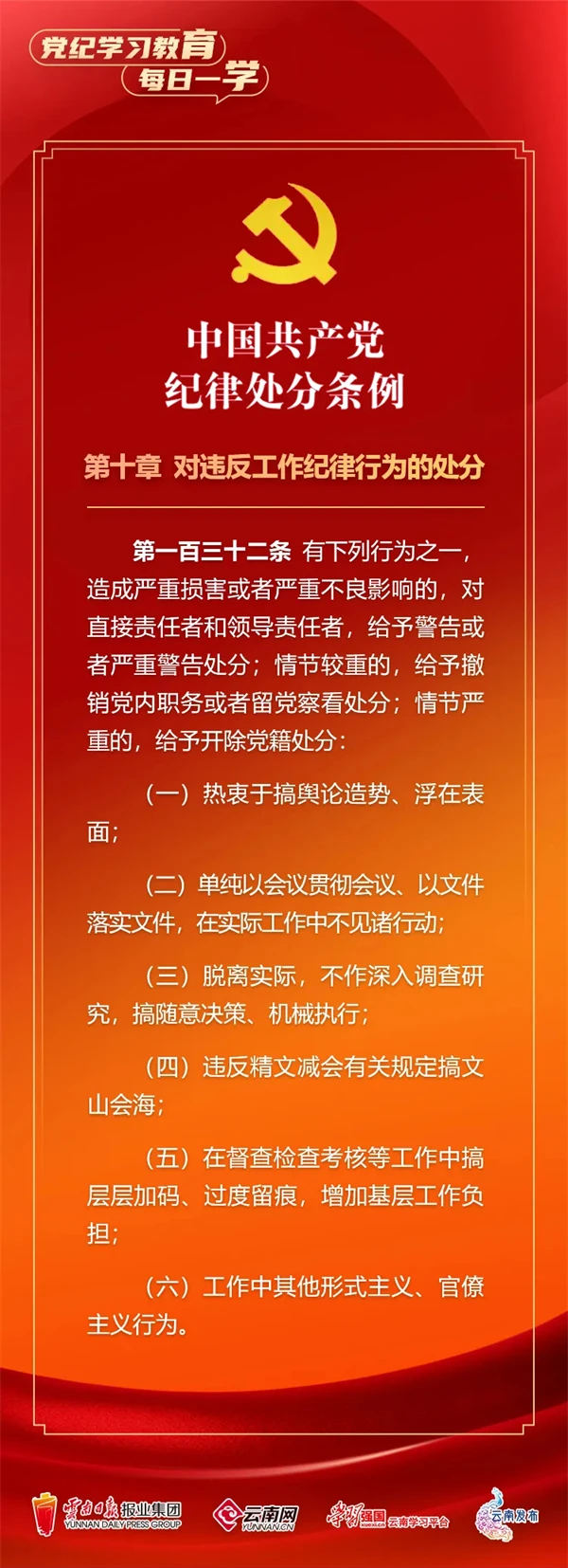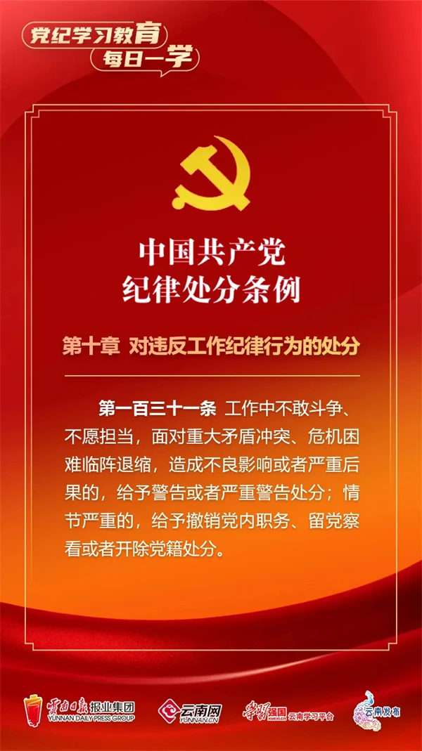 為深入學(xué)習(xí)貫徹落實(shí)習(xí)近平總書記關(guān)于黨紀(jì)學(xué)習(xí)教育的重要講話和重要指示精神,便于全省各級黨組織和廣大黨員、干部深入學(xué)習(xí)貫徹修訂后的《中國共產(chǎn)黨紀(jì)律處分條例》,云南網(wǎng)聯(lián)合“學(xué)習(xí)強(qiáng)國”云南學(xué)習(xí)平臺、云南發(fā)布共同策劃推出“黨紀(jì)學(xué)習(xí)教育•每日一學(xué)”專欄,營造全員參與、人人學(xué)紀(jì)的濃厚氛圍。今天,我們推出第62期,一起來學(xué)習(xí)。
