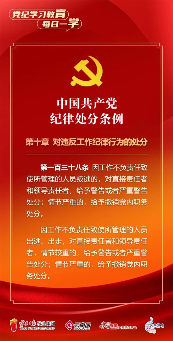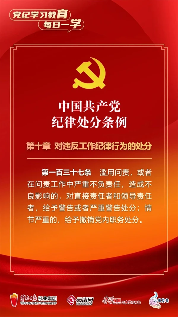 為深入學(xué)習(xí)貫徹落實(shí)習(xí)近平總書(shū)記關(guān)于黨紀(jì)學(xué)習(xí)教育的重要講話和重要指示精神,便于全省各級(jí)黨組織和廣大黨員、干部深入學(xué)習(xí)貫徹修訂后的《中國(guó)共產(chǎn)黨紀(jì)律處分條例》,云南網(wǎng)聯(lián)合“學(xué)習(xí)強(qiáng)國(guó)”云南學(xué)習(xí)平臺(tái)、云南發(fā)布共同策劃推出“黨紀(jì)學(xué)習(xí)教育•每日一學(xué)”專(zhuān)欄,營(yíng)造全員參與、人人學(xué)紀(jì)的濃厚氛圍。今天,我們推出第65期,一起來(lái)學(xué)習(xí)。
