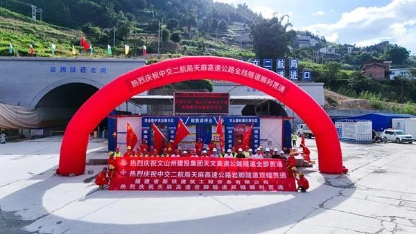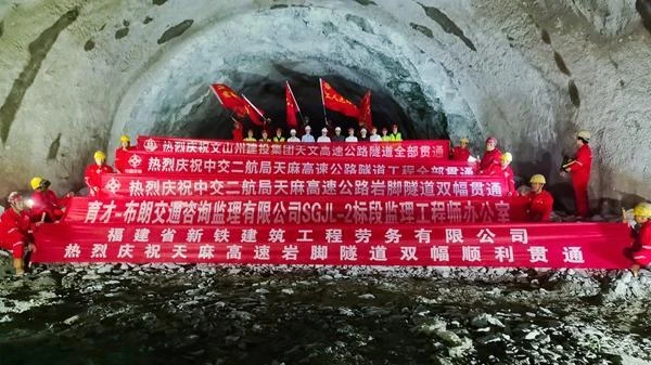 近日,隨著云南天麻高速公路重點控制性工程——全線最長隧道巖腳隧道雙幅貫通,標志著天麻高速所有隧道全線貫通。