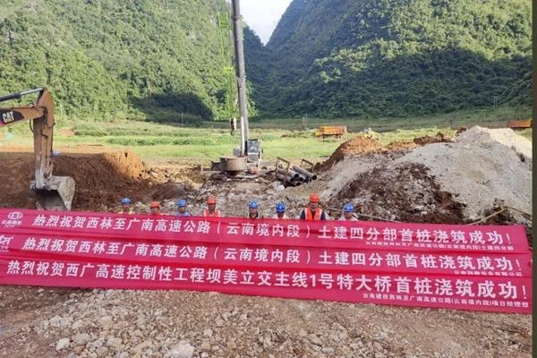 近日,西林至廣南高速公路(云南段)項目壩美立交主線1號特大橋首棵樁基順利完成澆筑。西廣高速主線共設橋梁32座(雙幅),其中壩美立交主線1號特大橋是該項目的關鍵控制性工程之一,左幅長1804.68米,右幅長1809.53米。